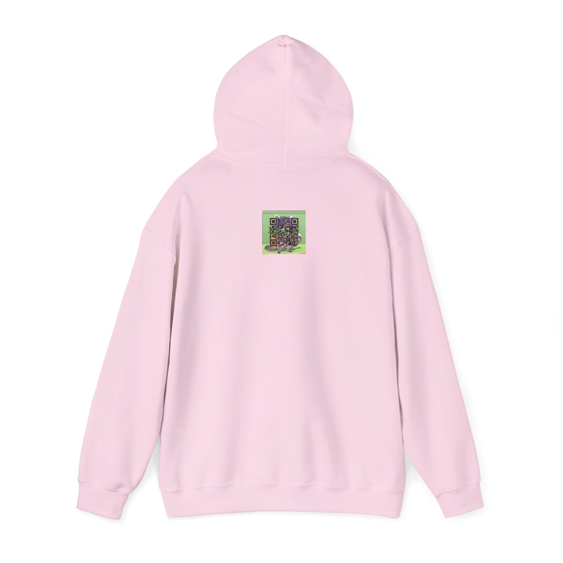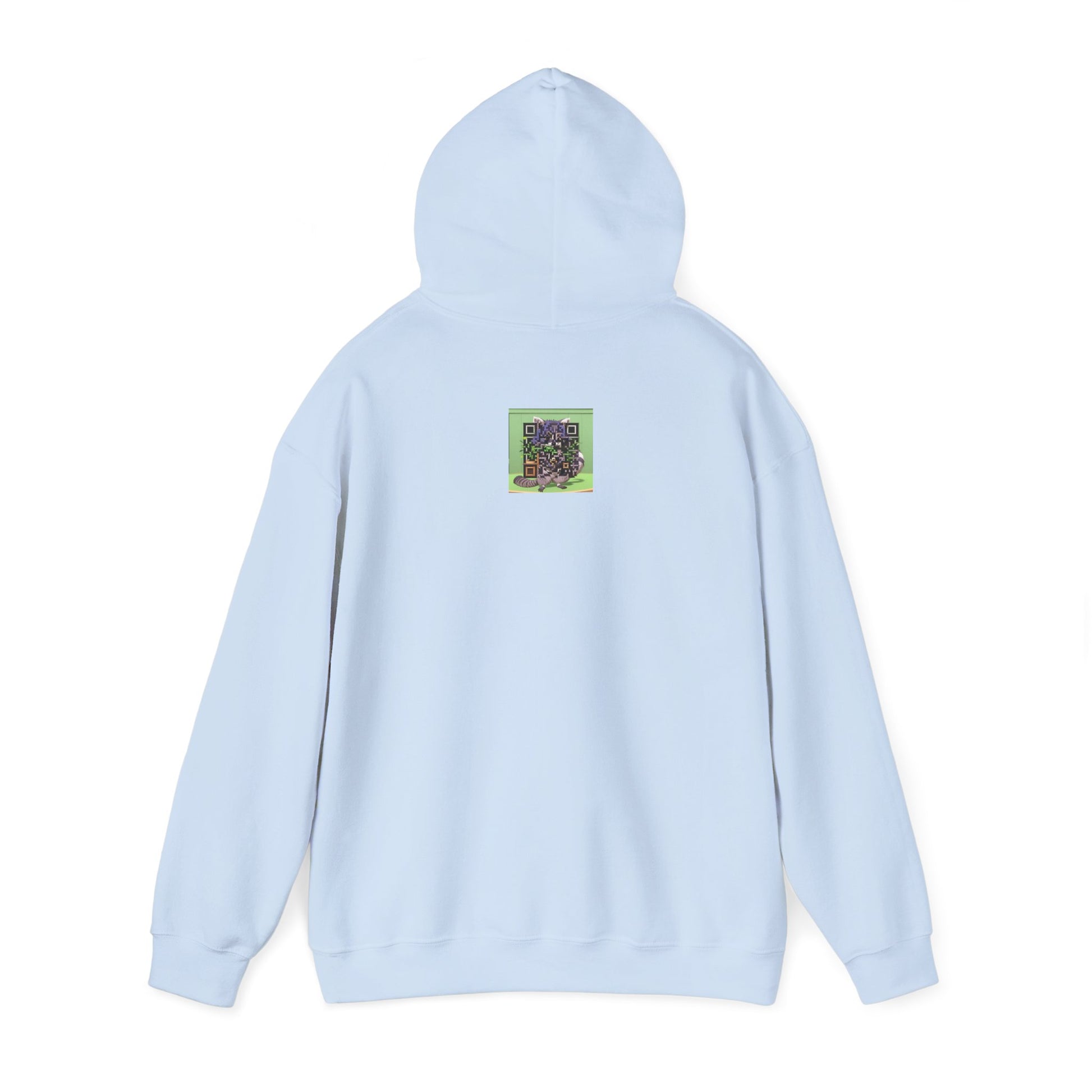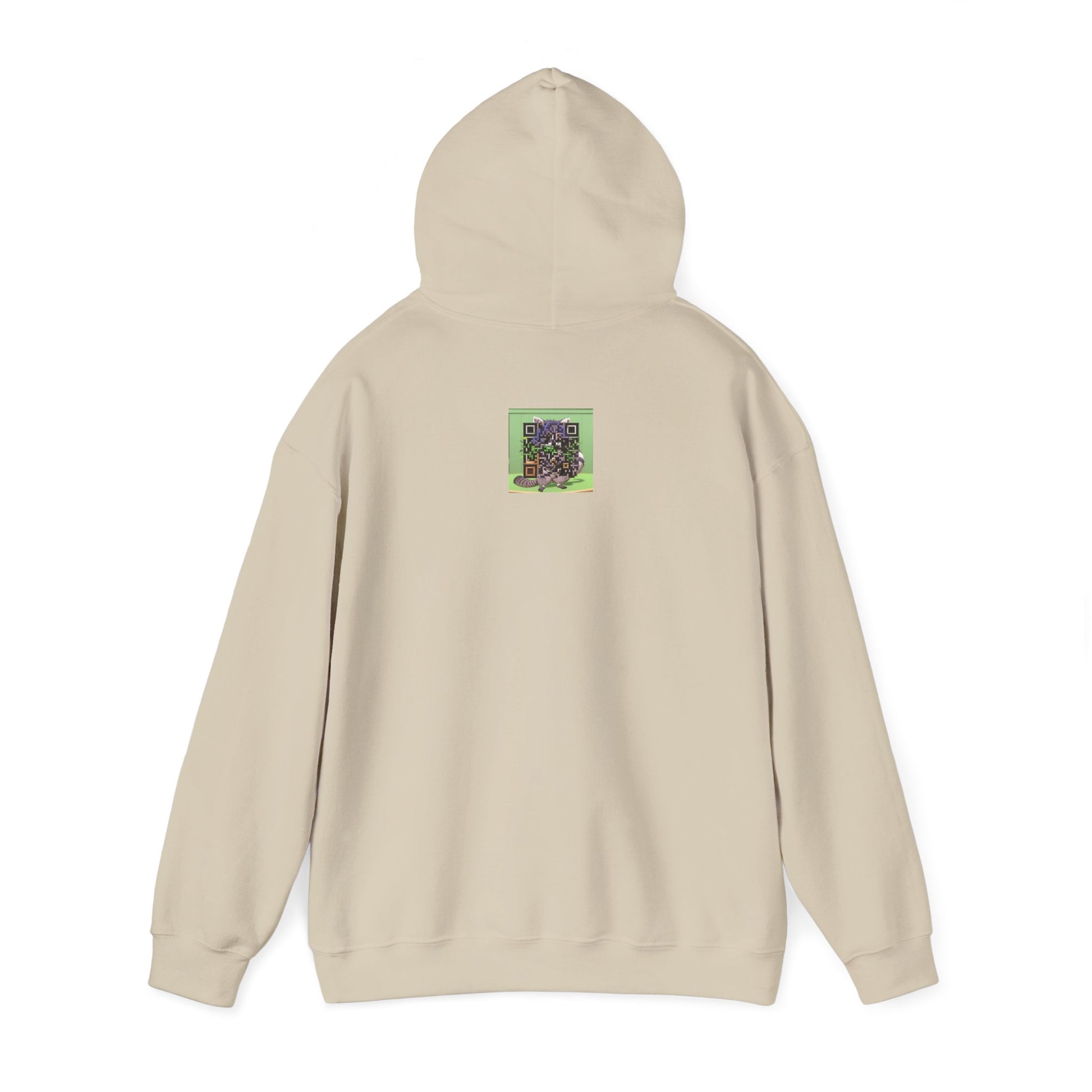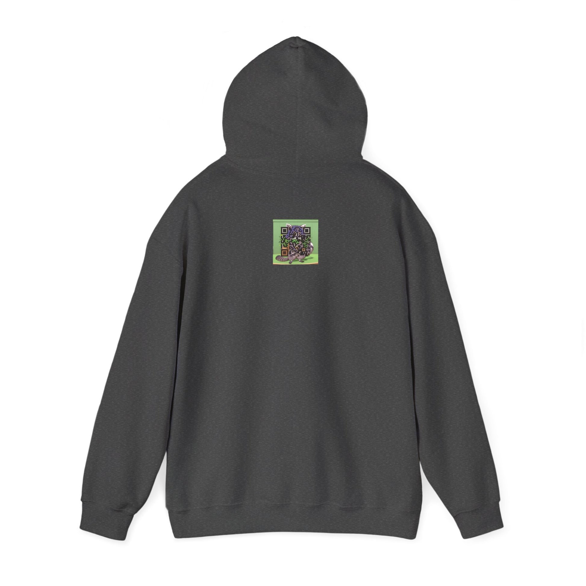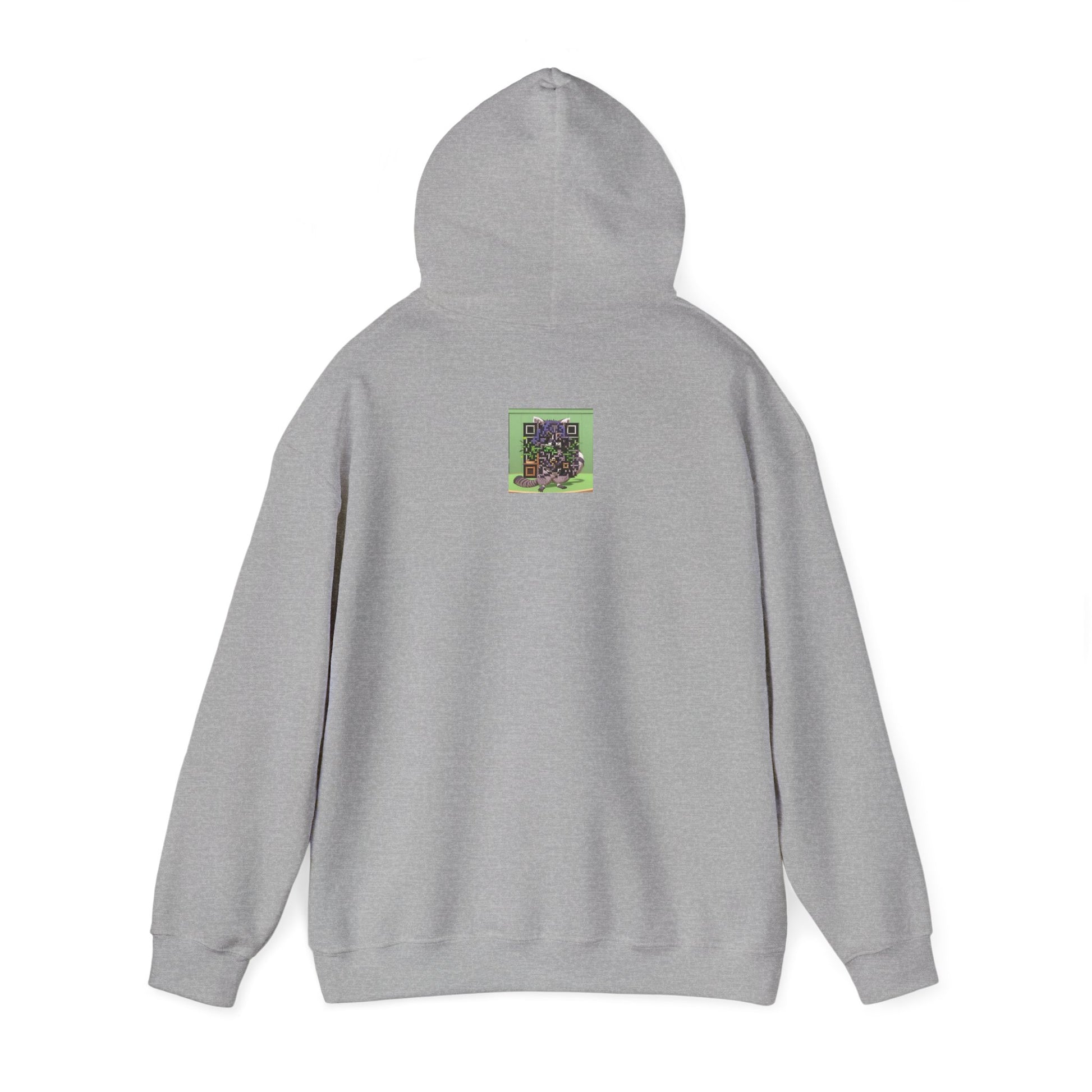 Stay cozy and stylish with this unisex hoodie featuring a unique raccoon design inspired by author Mosey Stuart. A cute QR code on the back connects directly with Mosey Stuart's website! Perfect for those looking to add a touch of whimsy to their wardrobe, this hoodie is great for casual outings or lounging at home. Ideal for adults, this hoodie is made from a blend of cotton and polyester for a comfortable and warm feel. The kangaroo pouch pocket and adjustable hood make it practical for everyday wear.